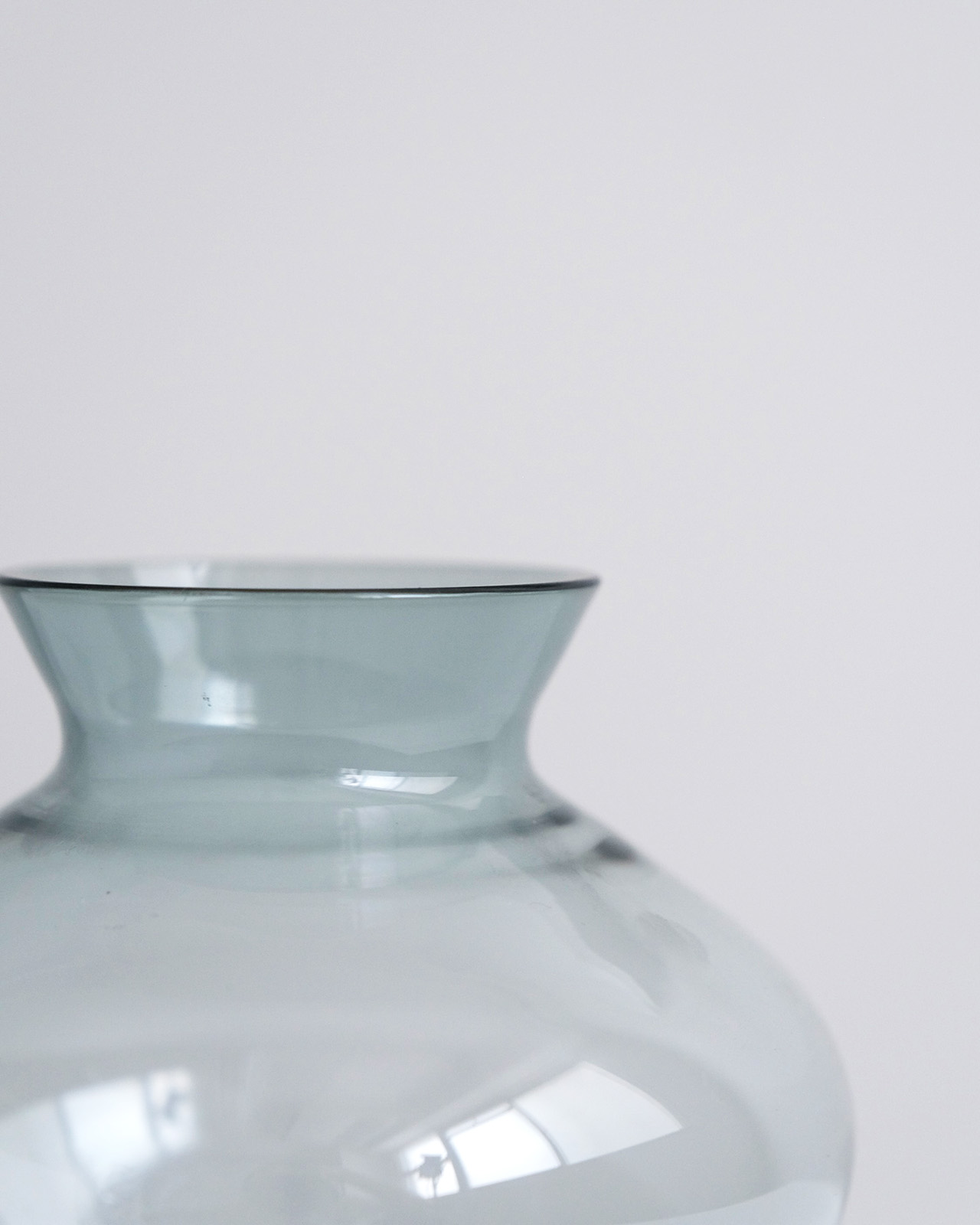 VLG社在籍時代の代表作であるハートべースをさらに進化させ、よりモダンな花器へと発展させた一品です。ぽってりと安定感のある底面から繊細でなめらかな曲線を描き、ガラスの厚みによって美しいグラデーションを生み出すトルマリンブルーカラー。花器としてはもちろんオブジェとしても成り立つ時代を超えた美しい佇まいの一品です。