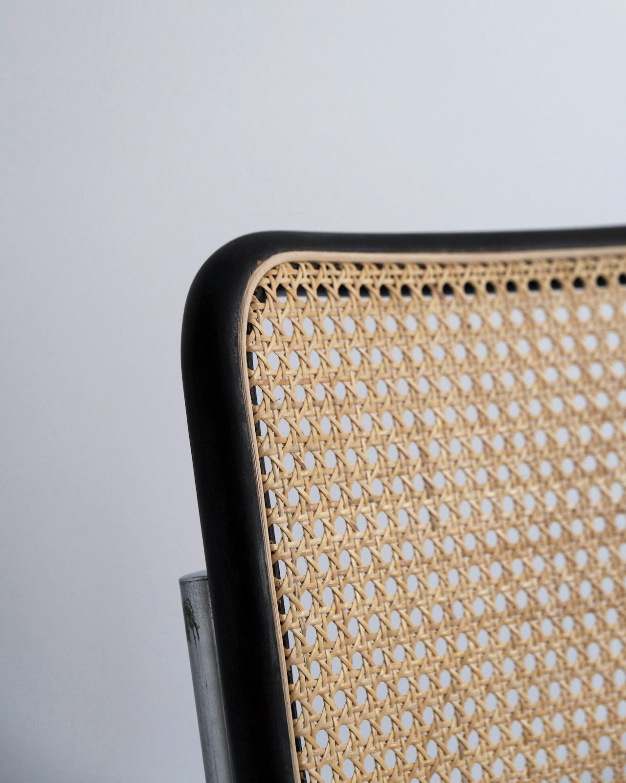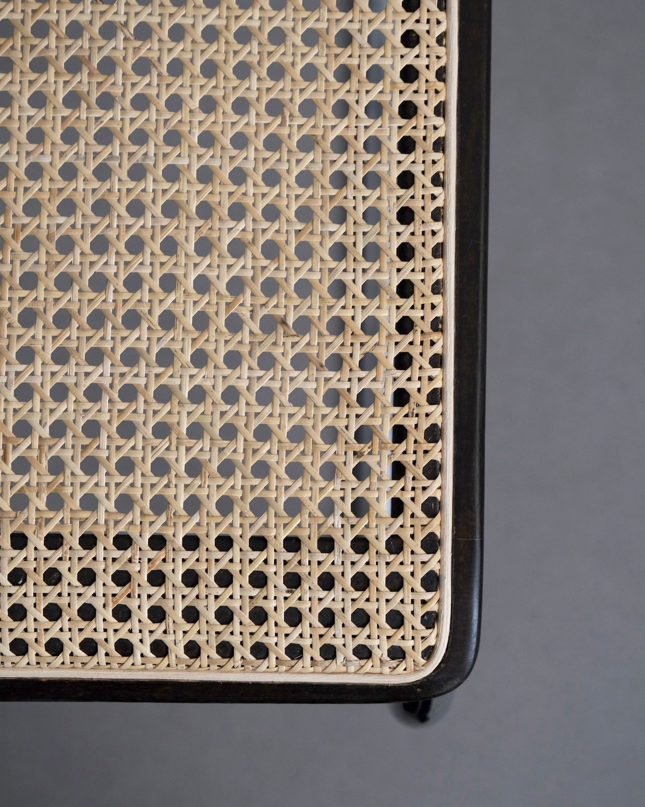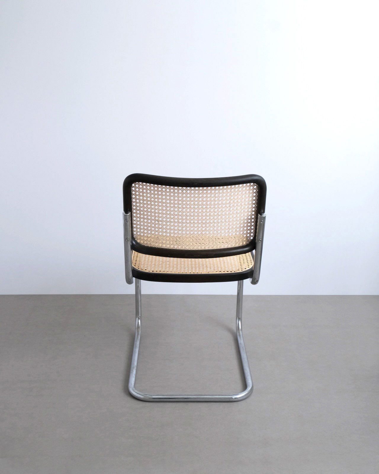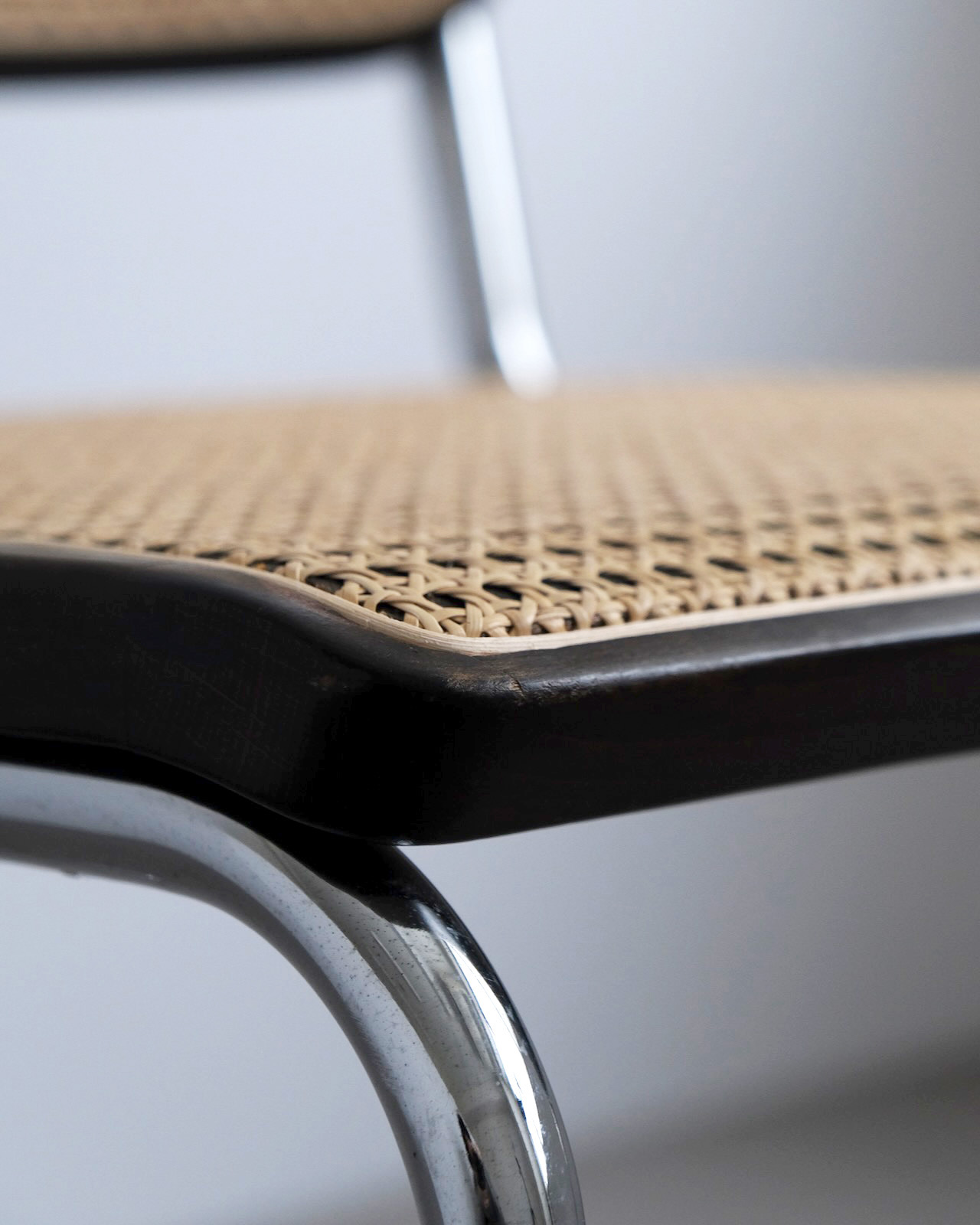 スチールチューブの工業的な素材使いと曲木に籐張りされた背座面のクラフト感が生む絶妙なコントラスト。カンチレバー構造特有のしなりが浮遊感ある快適な座り心地を実現しています。スチールフレームに沿うウッドの美しさは伝統的に曲木を得意とするThonetならでは。特に座面前方の膝裏部に沿う曲線美は他社製には見られないヴィンテージThonetだからこその大きなポイントです。